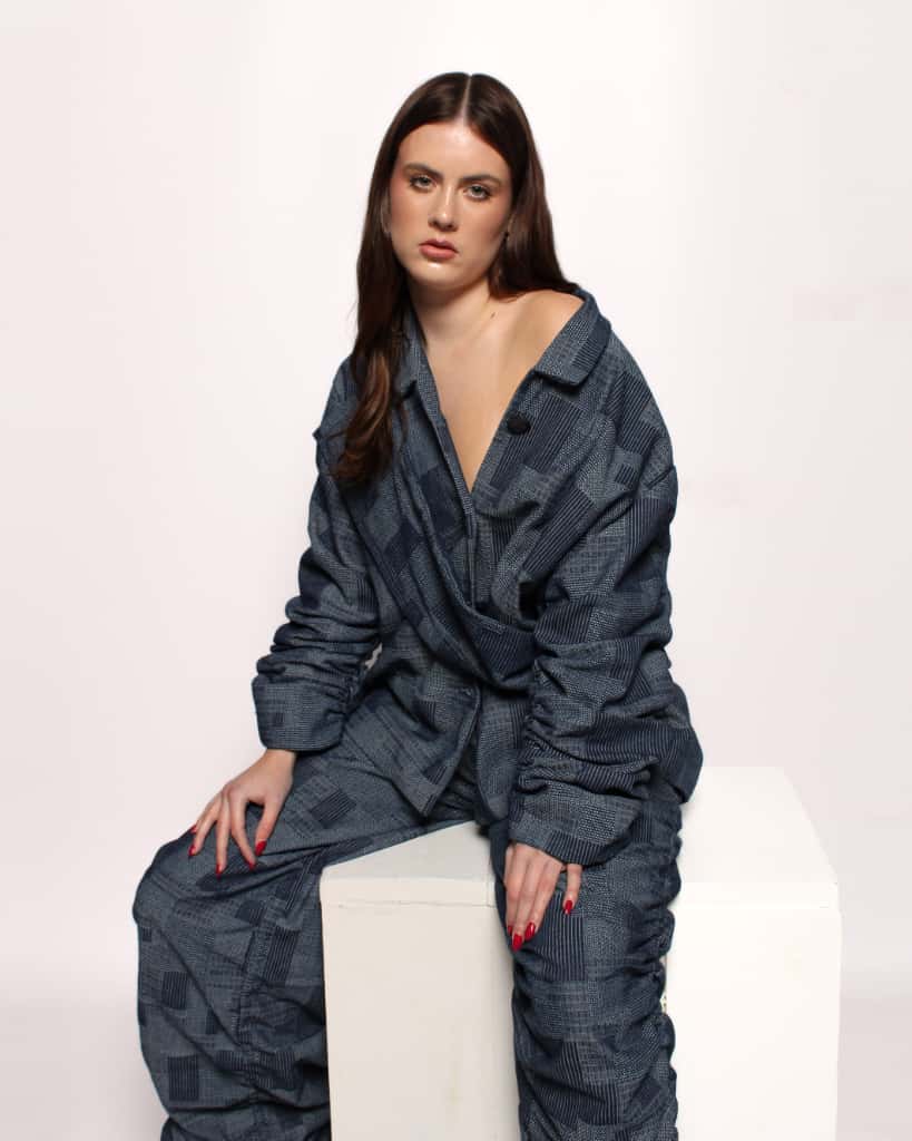 This Jacket is suitable to combine with the Pattern Pleated Denim Trousers. The pleats refer to the growth that you go through as a woman to discover your own identity. The jacket has an oversized fit. The pleats have an artistic effect in this Jacket.