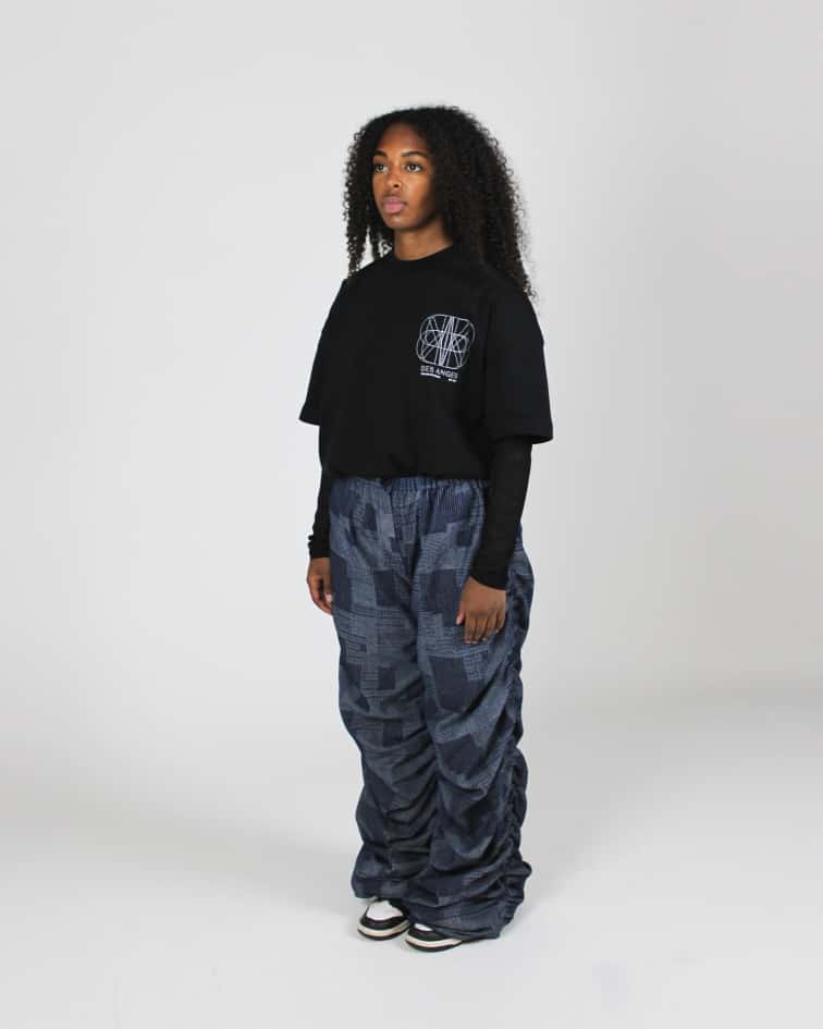 Trousers are suitable to combine with the Pattern Pleated Denim Jacket. The pleats refer to the growth that you go through as a woman to discover your own identity. Oversized fit. The pleats have an artistic effect in this Jacket.